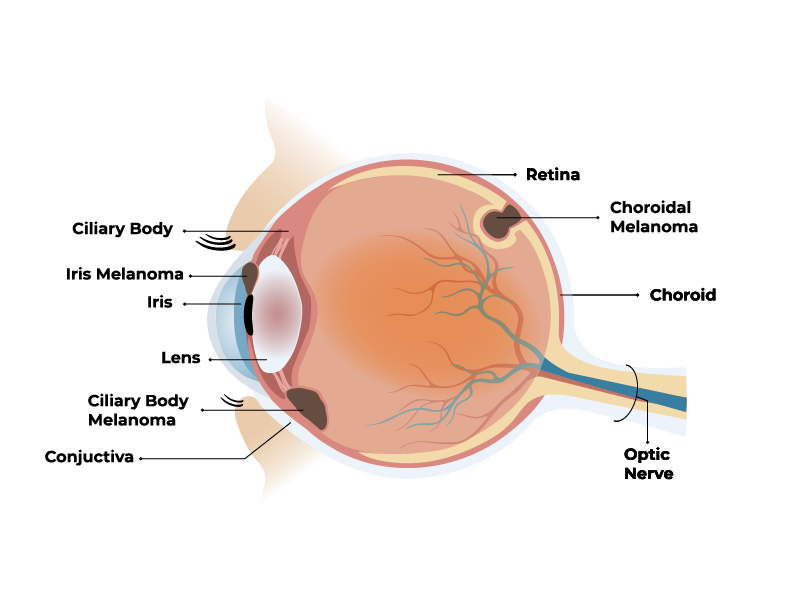 These melanomas form in the pigment-producing cells in the middle layer of the eye. You can learn more about the structure of your eye on the About Ocular Melanoma page.